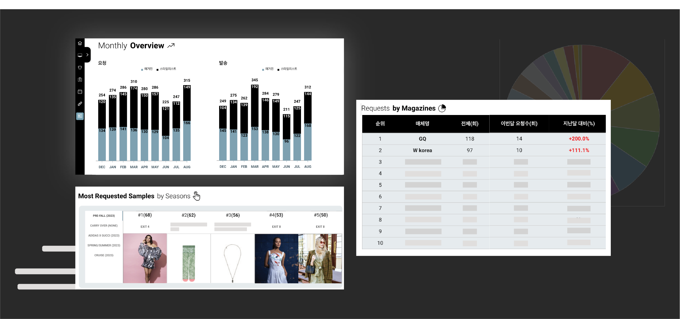 시즌별 최다 요청 샘플을 분석하여 추후 샘플 바잉에 전략적으로 참고하세요.